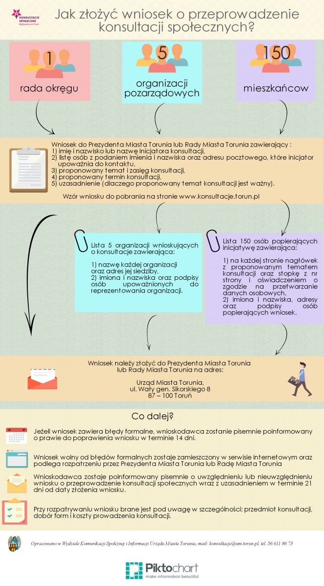 Dokładną procedurę składania wniosku o przeprowadzenie konsultacji społecznych znajdziesz na poniższej infografice.